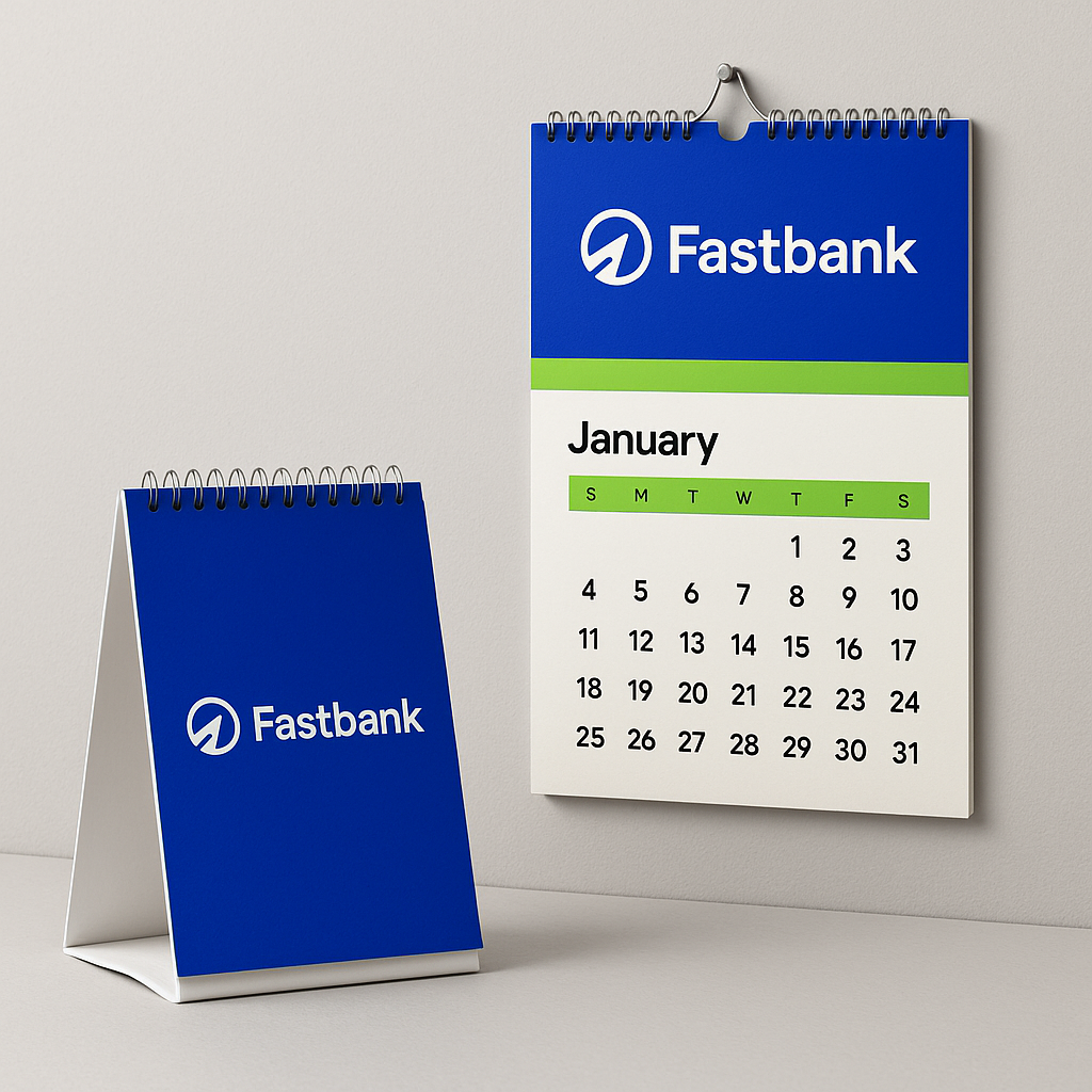 Temos opções de calendário de parede, de mesa, com ímã e em diversos tamanhos e formatos. Produzimos com base rígida acoplada e flexível, com acabamento de qualidade, unindo funcionalidade e personalização para destacar sua marca o ano todo.