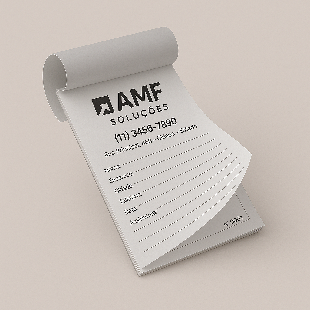 Personalizados para diversos fins, como recibos, pedidos e controles, com ou sem numeração, blocados com cola ou grampos.